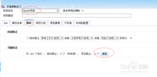 如何禁止iSpeak語音?(1)打開WFilter,在“監(jiān)控配置-- >封堵策略級(jí)別配置-- >編輯-- >iSpeak語音”。選擇“協(xié)議”,點(diǎn)擊“編輯”。將“iSpeak語音”狀態(tài)選為“禁止”,配置如下如所示: