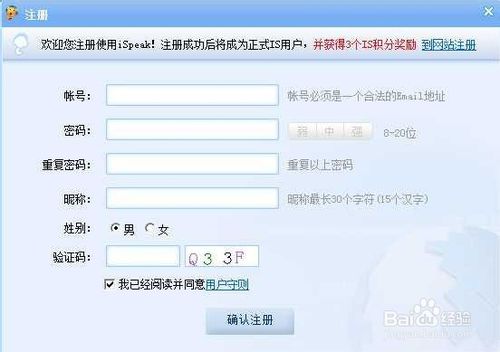 打開IS語音,如果沒有IS賬號(hào)的話,需要先注冊(cè),注冊(cè)需要郵箱賬號(hào),填寫郵箱密碼,輸入登錄密碼,注冊(cè)即可,注冊(cè)成功后用郵箱登錄,為了使自己的賬號(hào)安全,也可以綁定自己的手機(jī)號(hào),如果有賬號(hào)的話,直接登陸即可。【安裝教程】