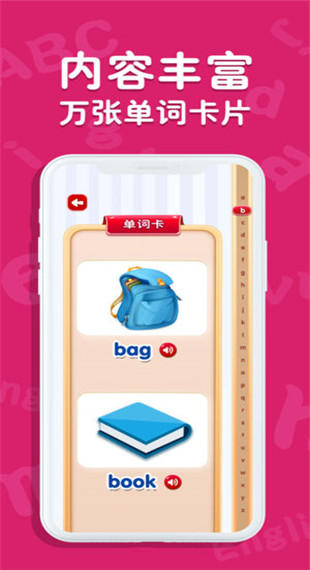 3、內(nèi)容豐富,萬張單詞卡片。