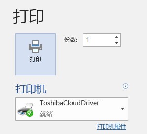 打開需要打印的文件,此處以Word文檔為例。選擇“打印”,并在打印機列表中選擇“ToshibaCloudDriver”,設(shè)置相應(yīng)的打印屬性,點擊“打印”按鈕。