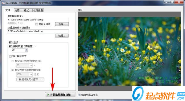 4、點(diǎn)擊開(kāi)始批量添加日期,能夠?qū)⒄麄€(gè)文件夾中的圖片全部添加時(shí)間