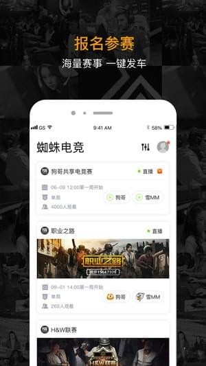 蜘蛛電競app是一個全新的共享電競品牌。蜘蛛電競app為用戶提供俱樂部運營、賽事服務、互動競猜、直播工具等服務。用戶在蜘蛛電競平臺可以隨時發(fā)起電競比賽、一鍵查詢近期的賽事信息,同時蜘蛛電競app還支持比賽資金眾籌,只有想不到,沒有辦不到的。