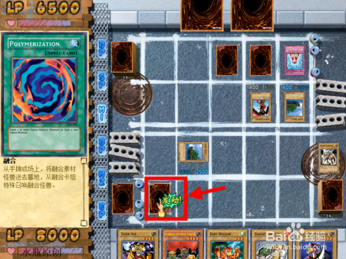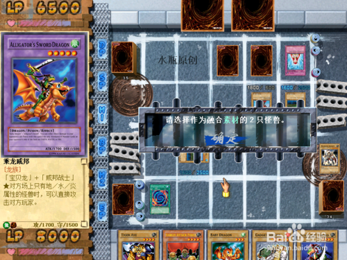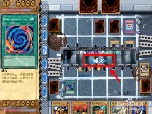4.融合怪獸那里點(diǎn)“確定”,然后將手牌里的寶貝龍、威邦戰(zhàn)士獻(xiàn)祭。