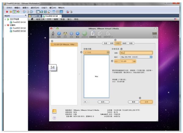 14、此根據(jù)先前設(shè)置硬盤大小而定,教程中我只分了一個區(qū),當(dāng)然可以分更多