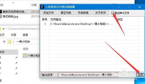 添加完成后,點擊有上角的輸出MP4文件格式,然后點擊下方的選擇自己需要輸出文件的位置,也就是輸出后的文件夾。