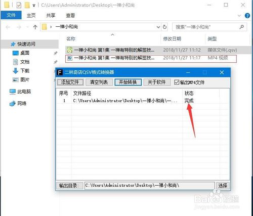 現(xiàn)在大家就可以看見軟件里面顯示轉(zhuǎn)換完成,新轉(zhuǎn)換好的MP4文件也出來了。
