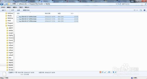 2、然后刪除mysql文件夾下的my.ini文件及所有文件