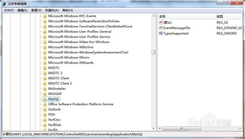 5、刪除HKEY_LOCAL_MACHINE\SYSTEM\ControlSet002\Services\Eventlog\Application\MySQL文件夾。HKEY_LOCAL_MACHINE\SYSTEM\CurrentControlSet\Services\Eventlog\Application\MySQL的文件夾。如圖低端的地址。如果沒(méi)有可以不用刪除了。