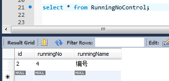 3、該存儲(chǔ)過(guò)程的功能是將“編號(hào)”這行記錄的流水號(hào)+1,在執(zhí)行存儲(chǔ)過(guò)程之前,我們查看下數(shù)據(jù)庫(kù)中該表的數(shù)據(jù)情況