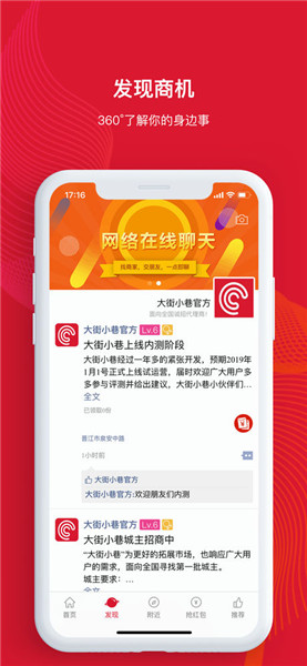 “大街小巷”是一款顛覆傳統(tǒng)的社交商圈平臺(tái),是商家的一個(gè)在線交流交友平臺(tái)。