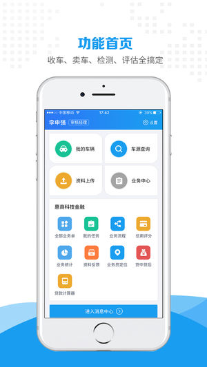 1、功能首頁收車、賣車、檢測、評估全搞定