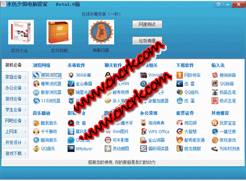 水色夕陽(yáng)軟件管家 V1.4 綠色免費(fèi)版 水色夕陽(yáng)軟件管家是一款便捷的軟件。它每天提供最新最快的中文免費(fèi)軟件、游戲、主題下載,讓你大大節(jié)省尋找和下載資源的時(shí)間,另外軟件管家依靠強(qiáng)大的軟件數(shù)據(jù)庫(kù)還能讓你清楚了解你手機(jī)上安裝的軟件,強(qiáng)大的卸載能幫用戶徹底刪除惡意和流氓軟件,是一款裝機(jī)必備的好軟件。