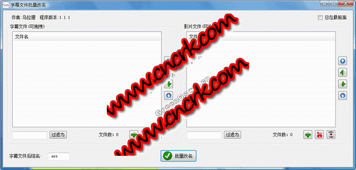 這是一款用于字幕文件批量改名的小軟件,可方便快捷的將字幕文件批量改名(可拖拽).