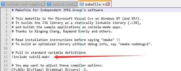 3、找到makefile.vc這個(gè)文件,打開(隨便一個(gè)文本編輯器)找到這一行
