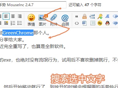 我這里選中了GreenChrome然后畫一個(gè)S,就可以直接打開瀏覽器搜索關(guān)鍵詞。