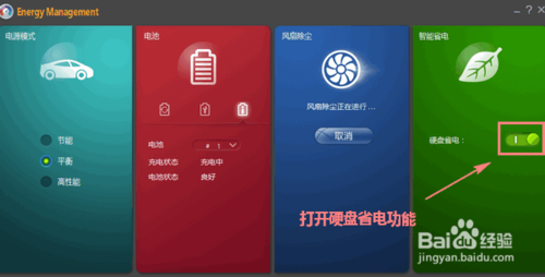 最后一個區(qū)域是“智能省電”。當(dāng)開關(guān)打開時,聯(lián)想電源管理可以針對硬盤的工作狀態(tài)智能地省電。