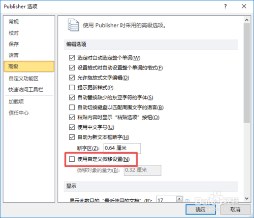 之后我們就可以看到使用自定義微移設(shè)置了,我們點(diǎn)擊前方的勾選框;