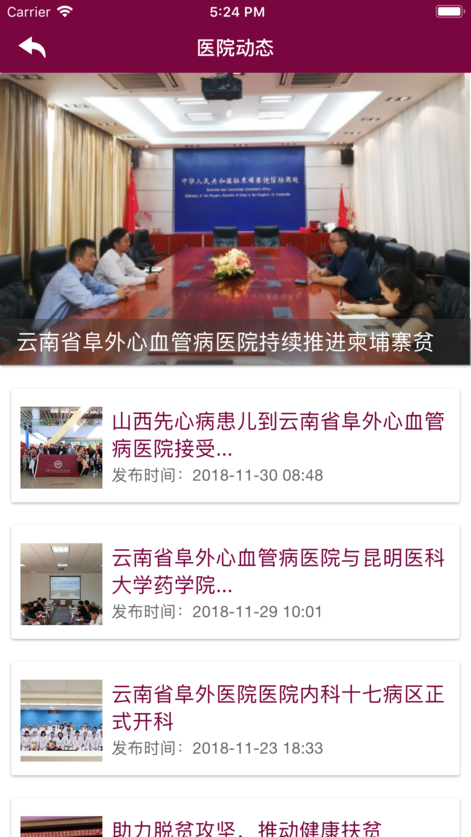 云南省阜外心血管病醫(yī)院APP是醫(yī)院官方移動客戶端。提供醫(yī)院概況、專家介紹、出診排班、新聞推送、預(yù)約掛號、健康宣教等功能,讓患者可以更便捷的就醫(yī),感受現(xiàn)代、高效、溫馨的醫(yī)院服務(wù)和健康關(guān)懷。