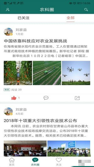 用戶可在農(nóng)科頭條軟件內(nèi)查看所關(guān)注的個(gè)人號(hào)發(fā)布的實(shí)時(shí)動(dòng)態(tài)。