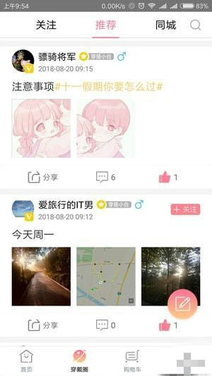 用戶可以在穿戴網(wǎng)app穿戴圈發(fā)表帖子并可關(guān)注、評(píng)論、轉(zhuǎn)發(fā)、點(diǎn)贊其他用戶的帖子。