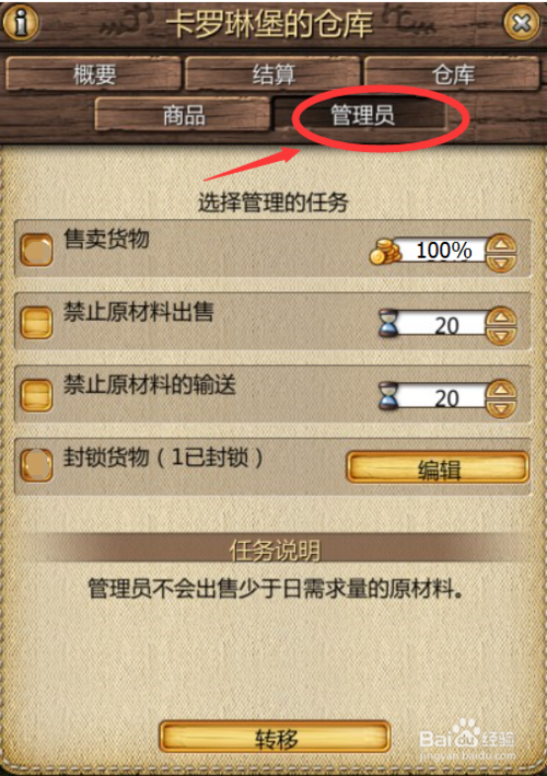 1.首先進(jìn)入城鎮(zhèn)倉(cāng)庫(kù),選擇管理員選項(xiàng),