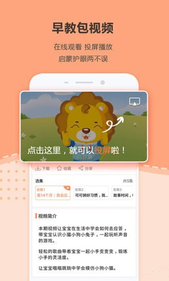 每月早教包DVD視頻在線播放和電視投屏播放,護眼啟蒙兩不誤;內(nèi)容整合:涵蓋科學實用的育兒文章,專家課程;