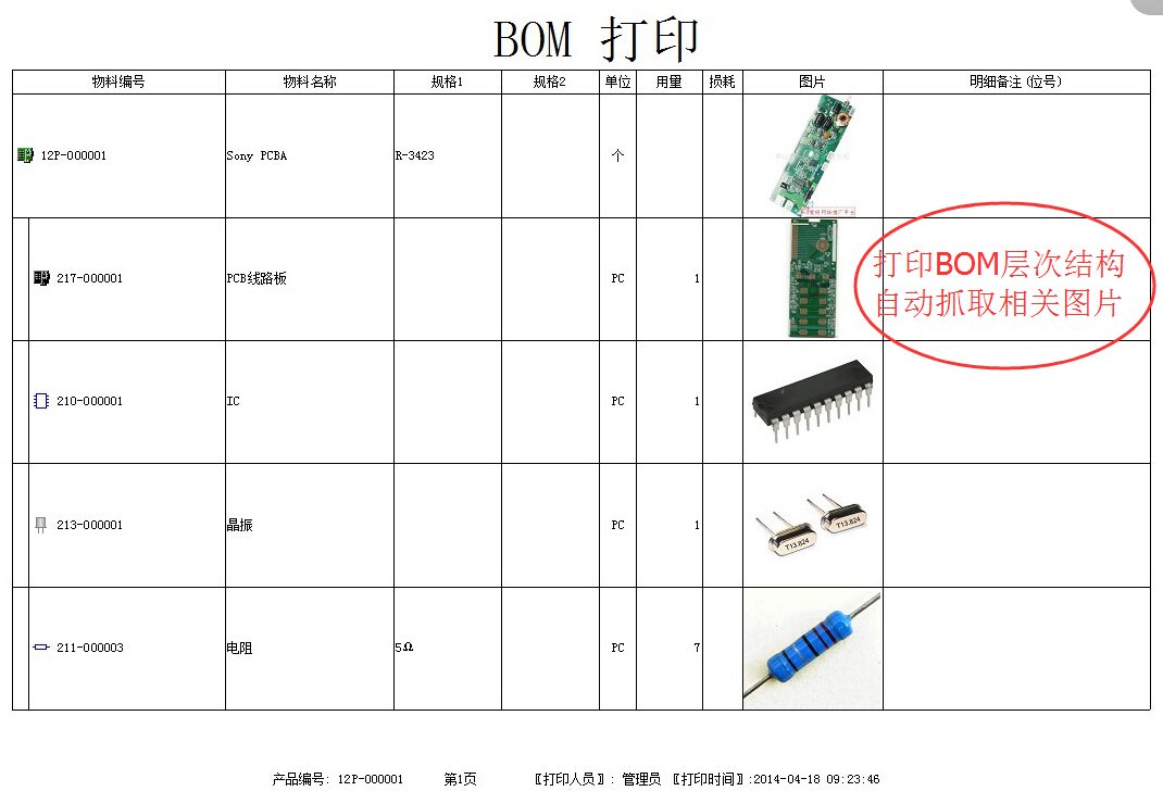 13>.自定義報(bào)表(FS報(bào)表)-->您可以在:"工程"-->"BOM查詢子料"中,有一份自定義報(bào)表(可把物料圖標(biāo)打印上去)