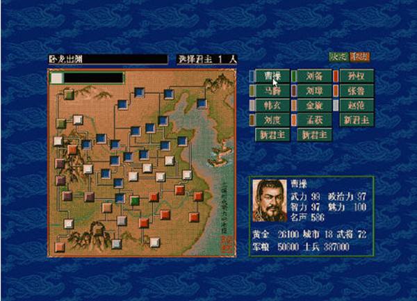 劉璋及曹操都是不錯的選擇。他們都擁有繁榮的城郡、勇悍的武將。不論守城或攻打別人的城郡,也是相當(dāng)進(jìn)宜。
