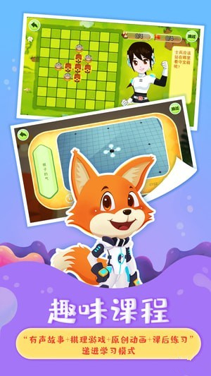 獨(dú)創(chuàng)“有聲故事+棋理游戲+原創(chuàng)動畫+課后練習(xí)”四環(huán)節(jié)遞進(jìn)學(xué)習(xí)模式,幫助孩子在快樂的氛圍中掌握棋理,快速實踐。