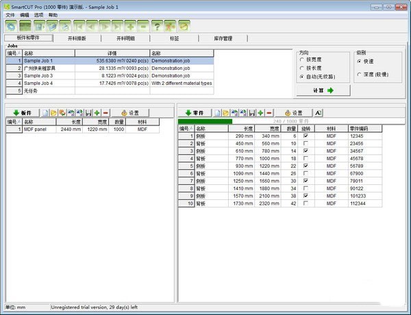 7、高性能、高速度開(kāi)料算法,材料利用率、余料最優(yōu)化、切割工作量最小化達(dá)到理想水平;