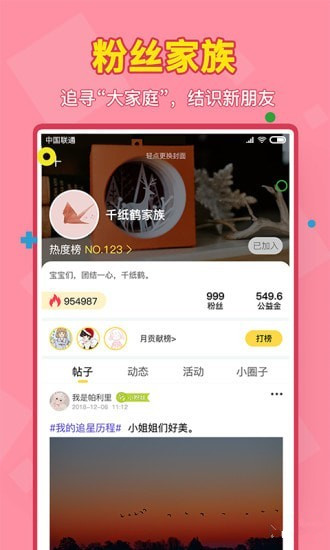 粉絲家族:找到自己的家族,創(chuàng)建自己的小圈子,秀出自我的同時不忘為家族做貢獻。