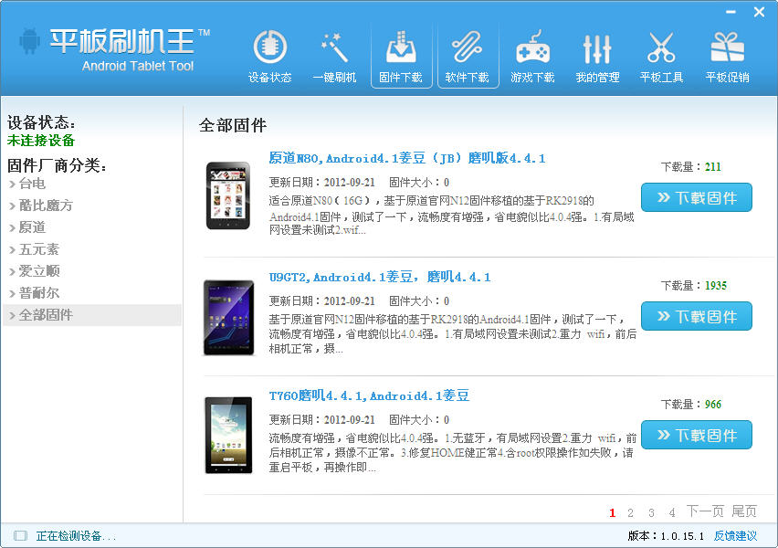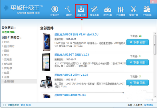 3、點(diǎn)擊固件下載,按照平板的型號(hào)下載相應(yīng)的平板固件;