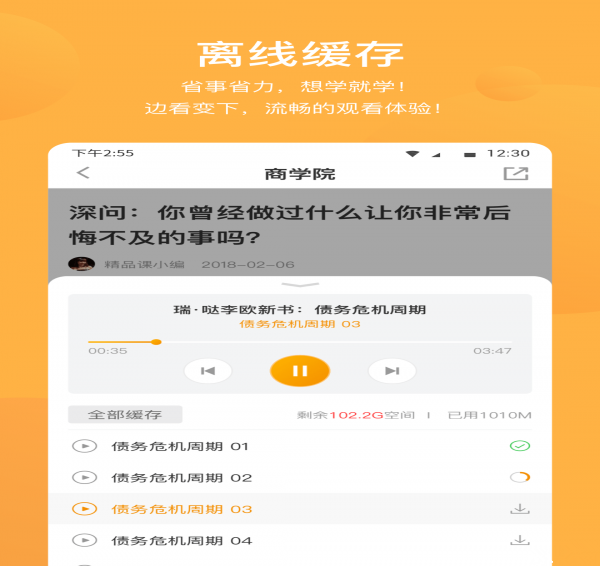 豐富的聽(tīng)課形式!支持音頻、視頻、直播、留言與老師進(jìn)行互動(dòng)!離線緩存!利用碎片化時(shí)間,想聽(tīng)就聽(tīng)!