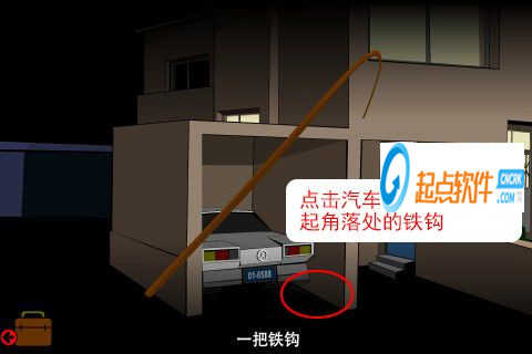 2、點擊汽車的右下角,靠墻的角落處有一根長長的鐵鉤,點擊拾起。