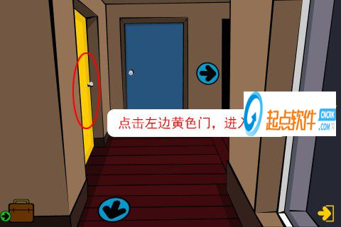 6、進(jìn)入屋內(nèi)后,點擊左邊黃色門,進(jìn)入房間。