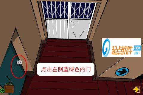 12、點擊左側(cè)藍(lán)綠色的門。