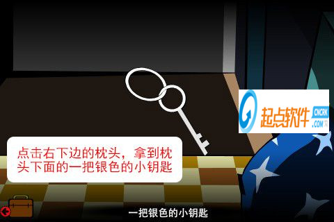 15、點擊右下邊的枕頭,拿到枕頭下面的一把銀色的小鑰匙