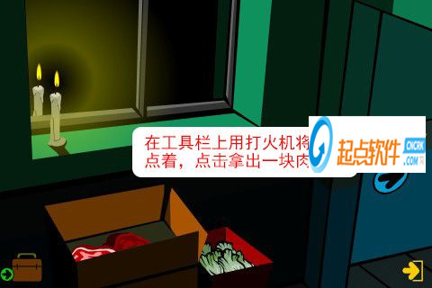 20、在工具欄上用打火機將蠟燭點著,點擊拿出一塊肉排。