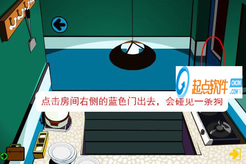 24、點擊房間右側(cè)的藍(lán)色門出去,會碰見一條狗。