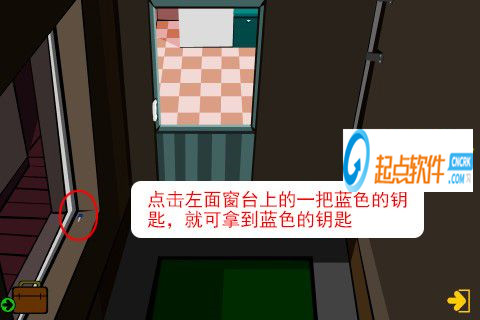 31、點擊左面窗臺上的一把藍(lán)色的鑰匙,就可拿到藍(lán)色的鑰匙。