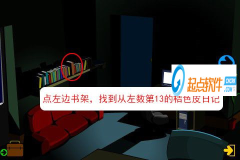 37、點左邊書架,找到從左數(shù)第13的桔色皮日記。