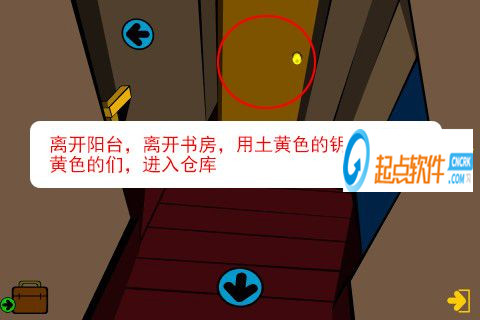 44、離開陽臺,離開書房,用土黃色的鑰匙打開土黃色的們,進(jìn)入倉庫。