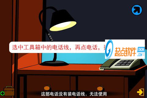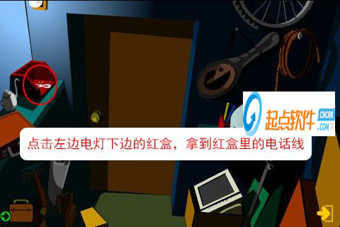 45、點擊左邊電燈下邊的紅盒,拿到紅盒里的電話線。