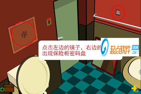 48、點擊左邊的鏡子,右邊的墻上會出現(xiàn)保險柜密碼盤。