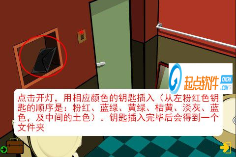 56、點擊開燈,用相應(yīng)顏色的鑰匙插入(從左粉紅色鑰匙的順序是:粉紅、藍(lán)綠、黃綠、桔黃、淡灰、藍(lán)色,及中間的土色)。鑰匙插入完畢后會得到一個文件夾。