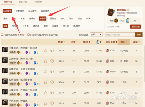 5.在這里,我們可以看到近期所有的熱門卡組,新奇卡組