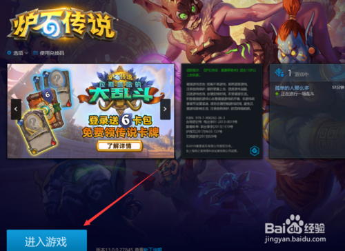 4.接著我們再打開爐石傳說,登錄到游戲里面。