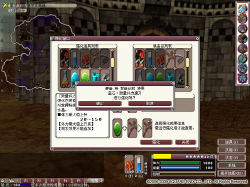 選擇寶石水晶和武器后點擊[強化]按鈕出現(xiàn)確認窗口,沒有問題的話點擊[確定]按鈕完成強化。