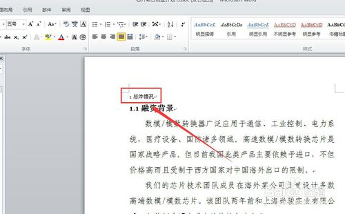 2、找到需要清除格式的地方,用鼠標點擊成為焦點事件。換言之,就是找到需要修改的地方,這里因為格式的限制,讓文檔不合時宜了,所以需要清除格式。如下圖所示,就是一個需要刪除的格式。