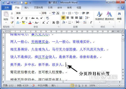 wrod2010分頁符怎么插入?